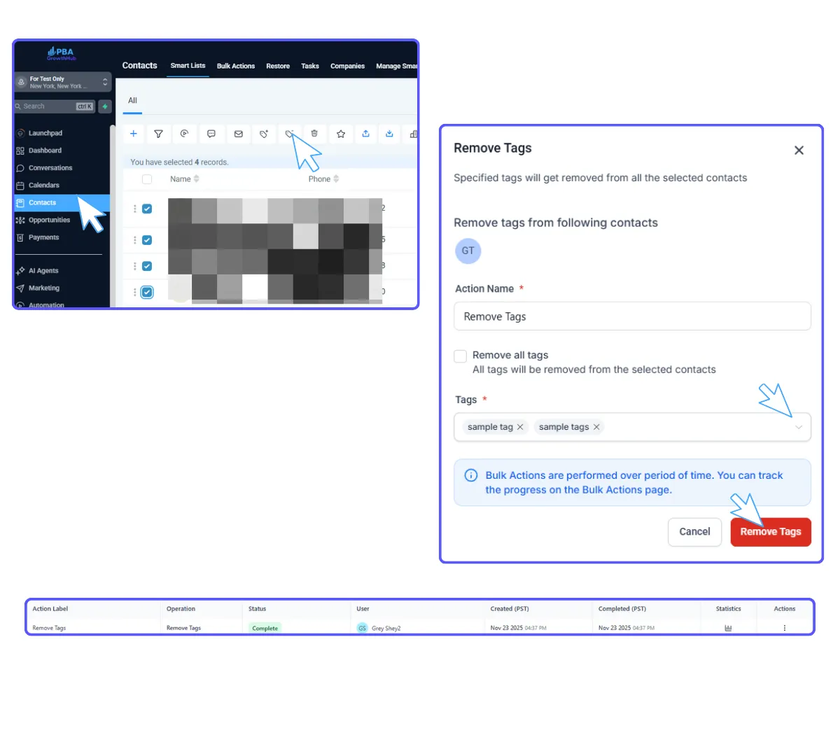 Wait for the bulk operation to complete; GrowthHub often shows a progress or success message.
