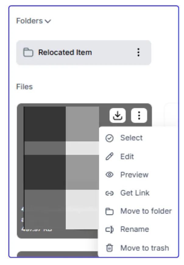 More options: Right-click an image to see options like getting its link, moving it to another folder, renaming it, or deleting it.
