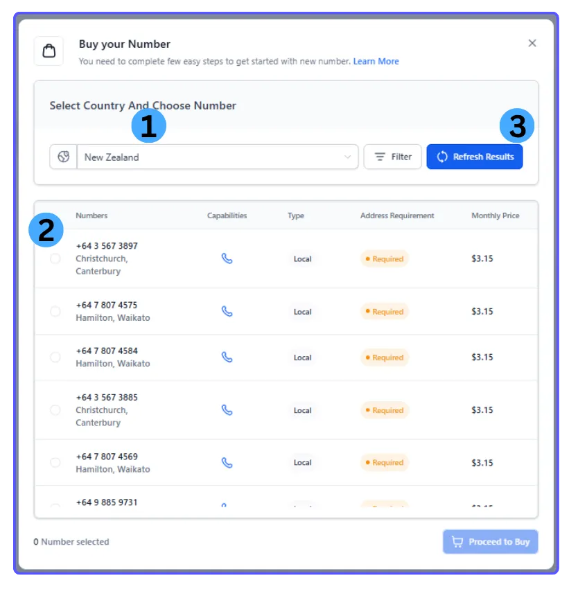 After your Regulatory Bundle has been approved, it must be assigned to the phone number you’re purchasing. This verification step is required to activate regulated numbers and ensure compliance.