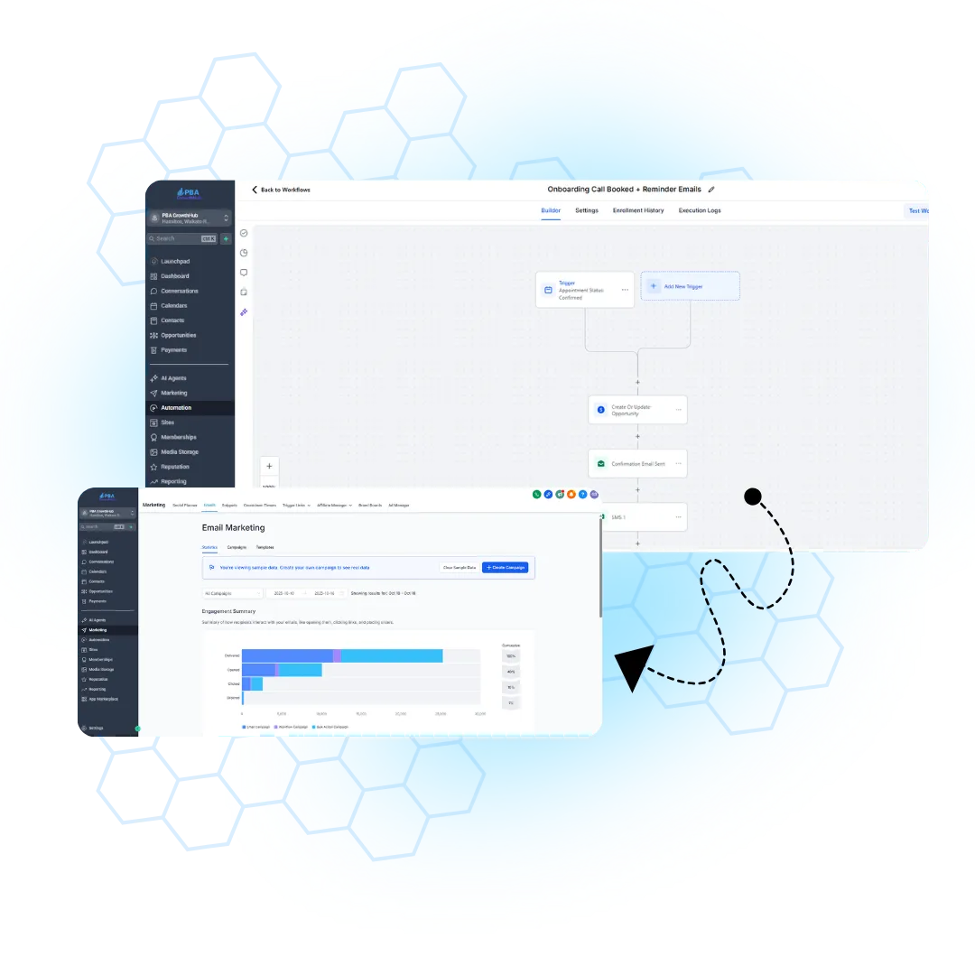 From lead capture to client onboarding — everything runs on autopilot.