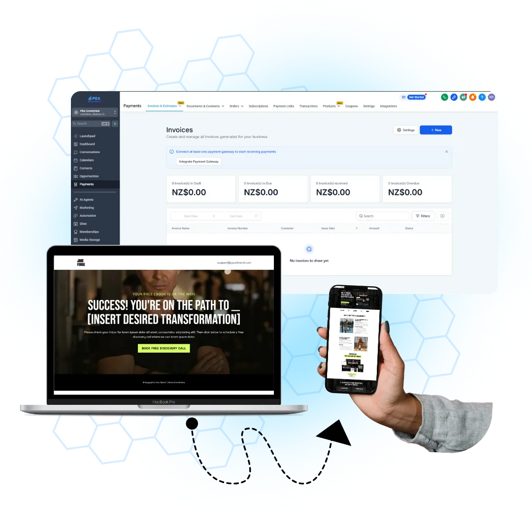 GrowthHub gives you everything you need to grow — your website, CRM, automations, payments, and live coaching — all in one simple system.