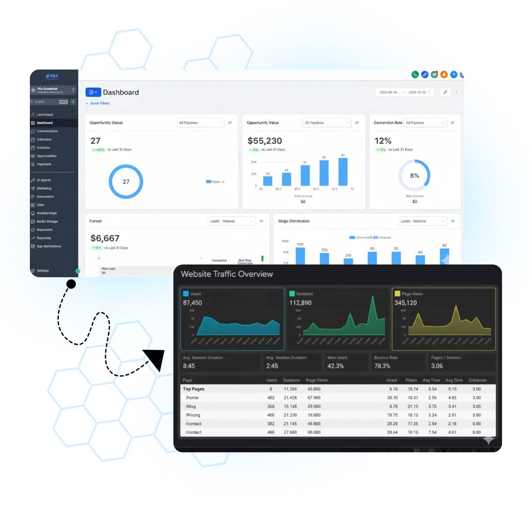 GrowthHub replaces your messy tech stack with one simple, powerful system that helps you attract leads, automate sales, and grow your business effortlessly.